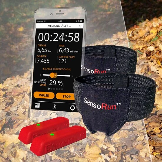 Mit dem Laufanalyse-Set „Sensoren und Bänder“ von SensoRun dokumentieren Sportler, Trainer und Freizeitläufer mobil und überall ihre Läufe. Ob zum Überprüfen von Trainingsmaßnahmen oder zum Erkennen von Belastungen während des Laufes – durch die Analyse mit SensoRun können Sie das nächste Lauftraining gelenkschonend und besonders effizient gestalten. Beispielsweise spiegelt der SensoRun Balance Index von 0–100 die Balance im Lauf wider. Dieser Wert beinhaltet den Links-Rechts-Vergleich aller laufrelevanter Bewegungs- und Stoßbelastungsparameter. Die gemessenen Daten sind live verfolgbar und werden zur weiteren Analyse und Dokumentation gespeichert. Aus den gesammelten Daten ergeben sich Empfehlungen in Form von Handlungsvorschlägen zur Optimierung des Laufverhaltens, abrufbar in der App.