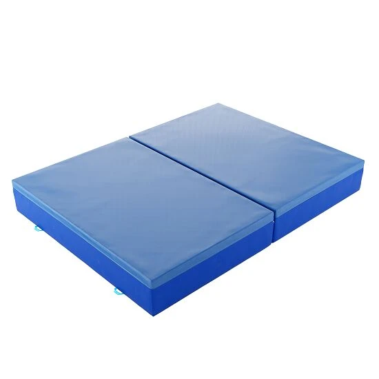 Das Sport-Thieme Hochsprungkissen „Indoor“ besteht aus 2 Kissen (je 200x300x50 cm) und einer Überzugsplane. Genoppter Turnmattenstoff auf der Unterseite machen das Kissen rutschfest. Zudem punktet das Kissen mit spikefestem Gittergewebe auf der Oberseite und an den Seiten. Das sorgt für eine ideale Entlüftung des Kissens bei Sprüngen, wodurch der Springer weicher landet und eine längere Haltbarkeit gewährleistet ist. Die beiden Kissen lassen sich obendrein auch ohne Plane nutzen und dienen so beispielsweise als Landefläche für Hallenweitsprung oder zum Turnen.