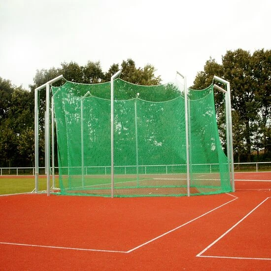 Das Sport-Thieme Schutzgitter „2020“ für Diskuswurf besteht aus 10 wetterfesten AluminiumAluminium ist ein korrosionsbeständiges und pflegeleichtes Leichtmetall, welches für den vielfältigen Einsatz im Innen- und Außenbereich geeignet ist. Aufgrund der hohen Elastizität und des nur geringen Gewichts, ist es eines der am häufigsten verwendeten Gebrauchsmaterialien.-Pfosten und bildet die Basis für eine Diskuswurf-Anlage. Die Pfosten entsprechen den DLVDeutscher Leichtathletik-Verband. Bestehend aus insgesamt über 900.000 Mitglieder, die sich auf mehr als 7.600 Vereine in insgesamt zwanzig Landesverbänden verteilen.– und World-Athletics-Vorgaben (Regel 190.3 gültig ab 2020) und sind in Deutschland gefertigt. Die Verankerung erfolgt im Boden mit einer Einstecktiefe von 70 cm in Bodenhülsen. Bestellen Sie das passende Netz und Zubehör für Ihre Diskus-Schutzanlage gleich mit.