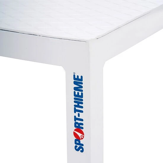 Dank des Sport-Thieme Starterpodestes „Alu“ steht der Starter 40 cm erhöht, um stets alles im Blick zu haben. Die große Standfläche von 80×80 cm bietet Standsicherheit. Die leichte AluminiumAluminium ist ein korrosionsbeständiges und pflegeleichtes Leichtmetall, welches für den vielfältigen Einsatz im Innen- und Außenbereich geeignet ist. Aufgrund der hohen Elastizität und des nur geringen Gewichts, ist es eines der am häufigsten verwendeten Gebrauchsmaterialien.-Konstruktion ist zudem mit einer rutschsicheren Oberfläche ausgestattet. Die weiße Lackierung passt in so gut wie jede Stadion- und Vereins-Ausstattung – zeitlos und elegant. Das Podest lässt sich dank des leichten Gewichts von einer Person transportieren.