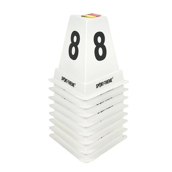 Das Sport-Thieme Startkästen-Set mit Fehlstartanzeige kommt im praktischen Set. Sie sind mit den Nummern 1 bis 8 bedruckt. Dadurch statten Sie gleich 8 Bahnen aus. Die Fehlstartanzeige je Startkasten besteht aus 2 Anzeigetafeln aus AluminiumAluminium ist ein korrosionsbeständiges und pflegeleichtes Leichtmetall, welches für den vielfältigen Einsatz im Innen- und Außenbereich geeignet ist. Aufgrund der hohen Elastizität und des nur geringen Gewichts, ist es eines der am häufigsten verwendeten Gebrauchsmaterialien.: 1x Rot (disqualifiziert) und 1x Gelb (verwarnt). Diese klappen Sie bei Bedarf nach oben. Die Kästen sind stapelbar und leicht, wodurch sie sich einfach transportieren lassen.