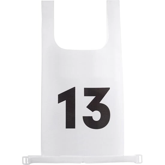 Doppelstartnummern mit schwarzer Ziffer aus Centdekstoff (PES), die Sie einfach mittels Klettverschluss befestigen können.