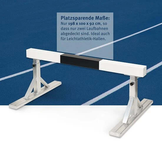 Die Idee für das kleinere und besonders gut handelbare Sport-Thieme Trainingshindernis „Club SC-TR“ ist im Austausch mit Trainerinnen und Trainern aus dem Leistungssport entstanden. Der Wunsch ist: Ein Trainingshindernis, welches leicht aufzubauen und schmaler ist, sodass es auch in der Leichtathletikhalle einsetzbar ist. Durch dieses – exklusiv bei Sport-Thieme erhältliche – Hindernis sind nur 2 Bahnen abgedeckt und nicht alle 4 Bahnen, die in einer entsprechenden Halle zumeist vorhanden sind. Somit ist trotz des Hindernisses ausreichend Platz für weitere Trainierende, die die Laufbahnen benötigen. Das gilt selbstverständlich auch für den Outdoor-Bereich. Darüber hinaus ermöglicht die komfortable Größe einen leichten Transport und Aufbau.